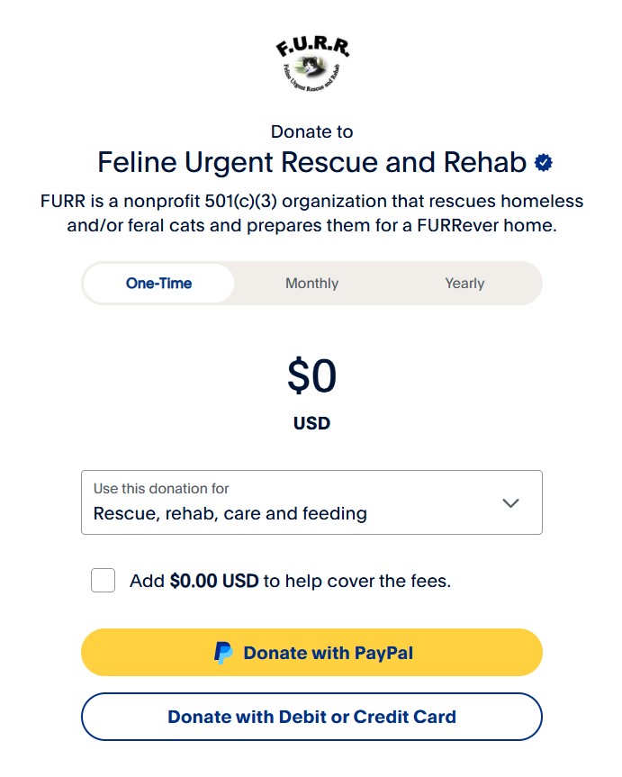 - Support urgent veterinary care for newly rescued cats and kittens who often need a variety of treatments and/or surgery for ailments and injuries!