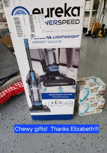 Next, thanks to Elizabeth for making contact with various companies on FURR’s behalf to see what we can get! She was able to get Chewy to donate FOOD & A NEW VACUUM! Way cool Elizabeth!